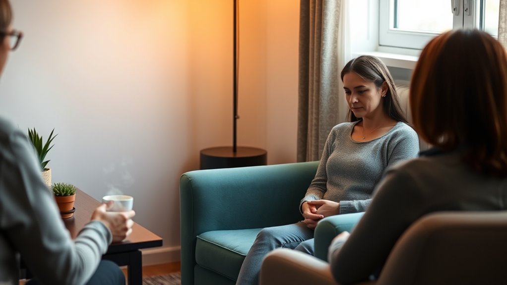 To find a mental health professional near you, start by searching online directories like Psychology Today or Zocdoc, which let you filter by location and specialty. Don’t let mental health stigma hold you back—look for licensed therapists with proper qualifications. You can also ask your primary care doctor for recommendations or check with your insurance provider for covered providers. Remember, finding the right therapist is a crucial step toward feeling better.
